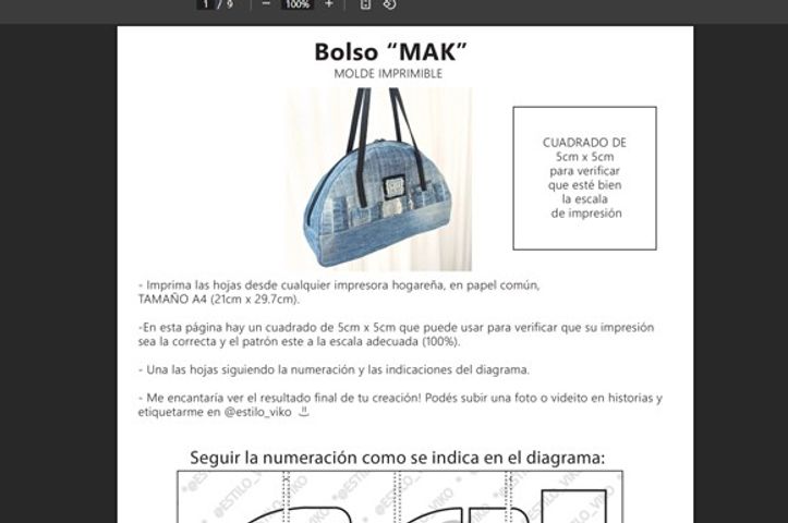 Este molde imprimible te permite confeccionar un bolso semicircular con cierre y manijas, ideal para usar todos los días o como proyecto de costura creativa.